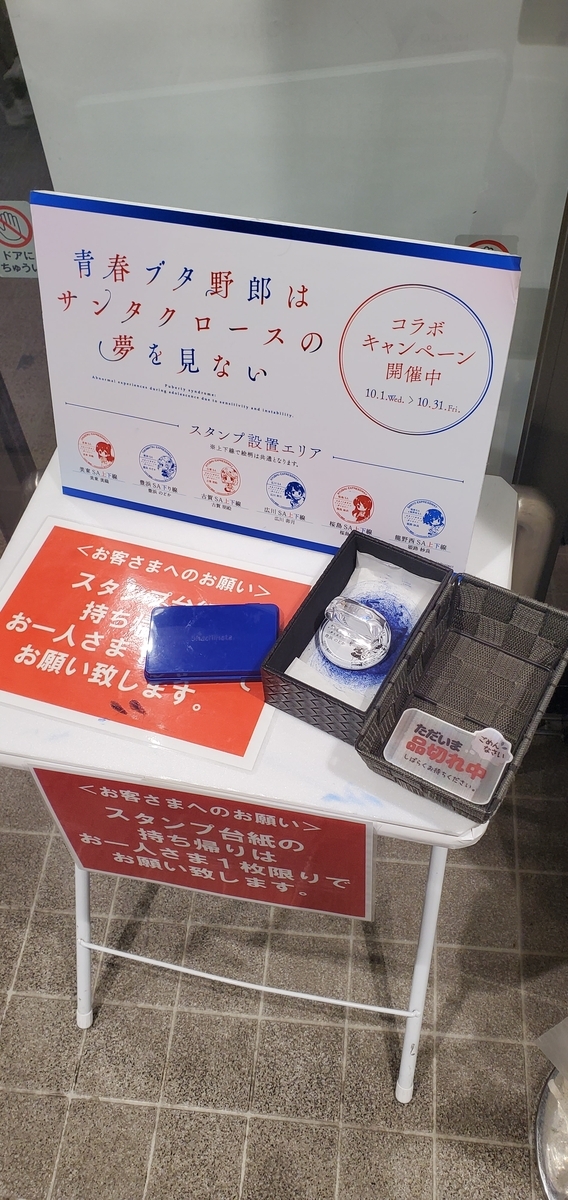 2025年10月1日(水)~2025年10月31日(金)の期間で開催中のサービスエリア×「青春ブタ野郎はバニーガール先輩の夢を見ない」コラボについて、先日全箇所を制覇してきました。